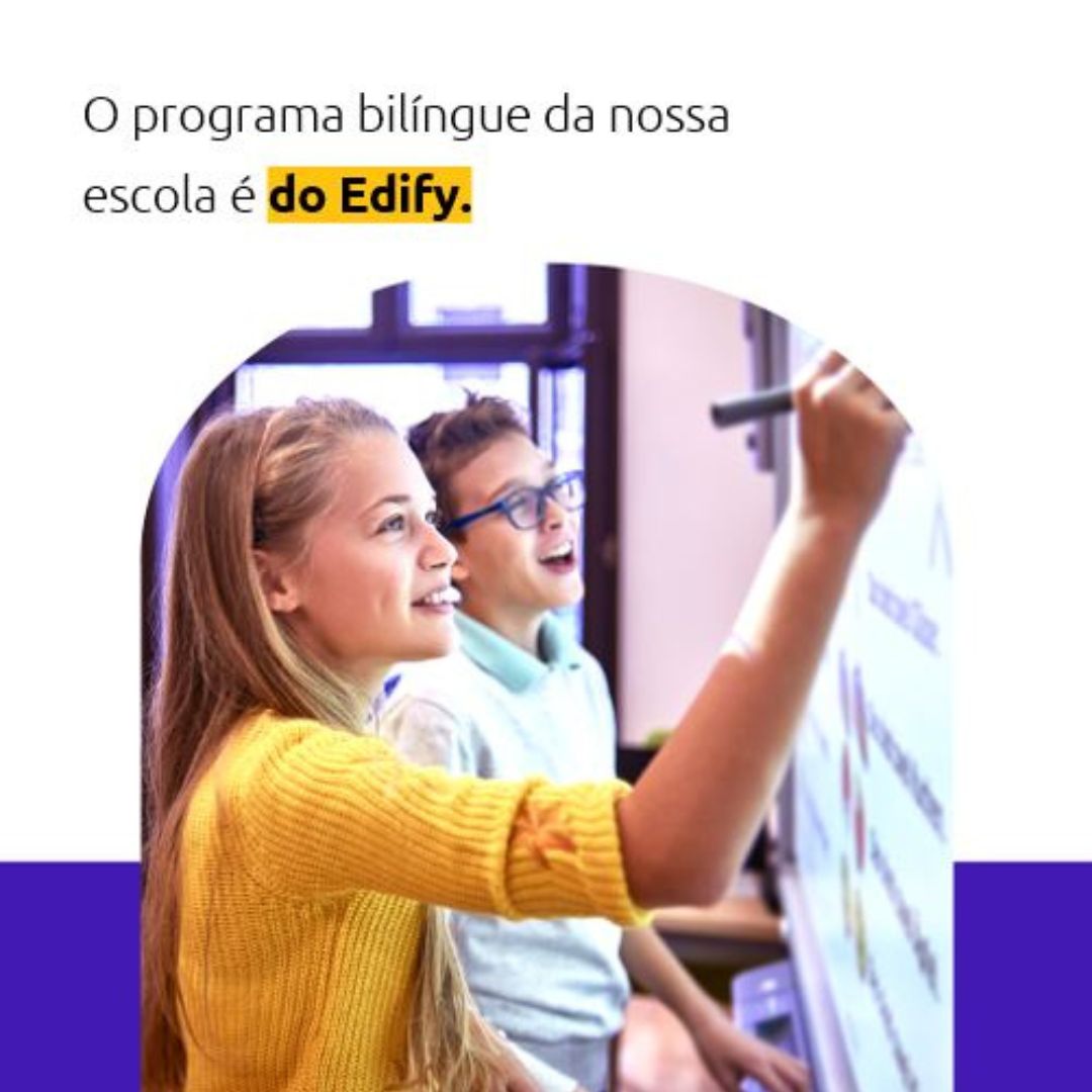 Nossa escola tem parceria com Edify, solução educacional. O nosso objetivo principal com o Programa Bilíngue é fazer a criança pegar gosto em aprender assim com naturalidade com outro idioma.