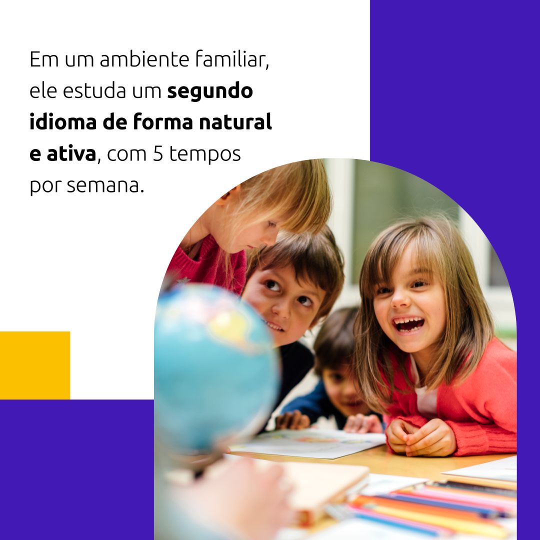 Em nosso Programa Bilíngue há uma imersão completa, garantindo que o aluno use a língua como ferramenta para desenvolver outras competências além da comunicação como; criatividade, empatia, flexibilidade, liderança, trabalho em grupo.